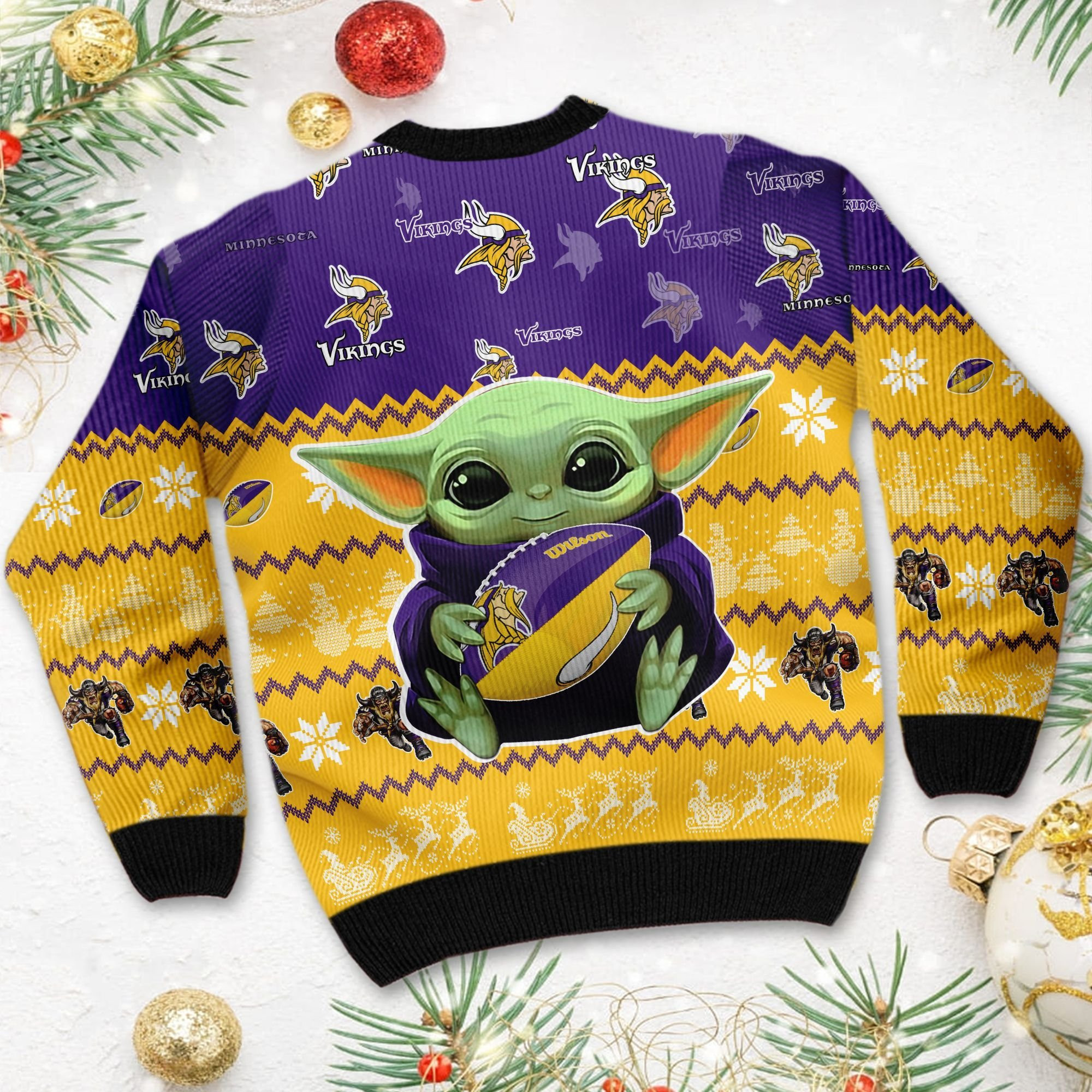Introducing our eagerly anticipated Minnesota Vikings Baby Yoda Ugly Christmas Sweater, Perfect Holiday Gift 2023 – the pinnacle of festive fashion and a must-have addition to your holiday wardrobe! Carefully crafted from premium polyester, these sweaters not only offer a snug fit but also deliver lasting comfort. Explore a captivating array of holiday-themed designs, meeting the widespread demand for classic motifs, playful characters, and clever slogans.