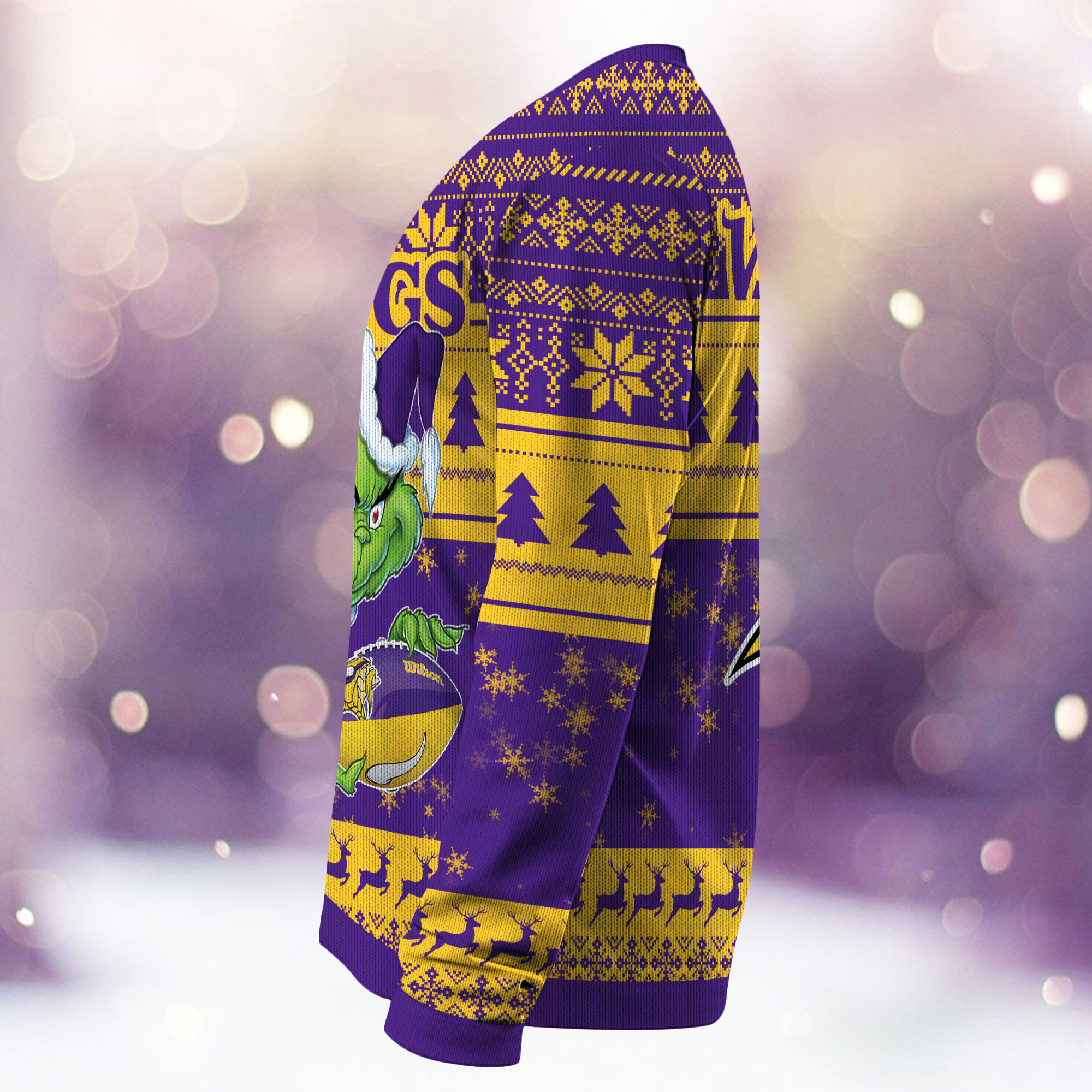 Impress your family and friends with a distinctive blend of style and humor. Our Minnesota Vikings Grinch Ugly Christmas Sweater, go beyond mere apparel; they embody a tradition that sparks joy and creates enduring memories. Embrace the festive spirit with these vibrant polyester masterpieces – the perfect choice to make this holiday season memorable for all those seeking festive clothing treasures.
