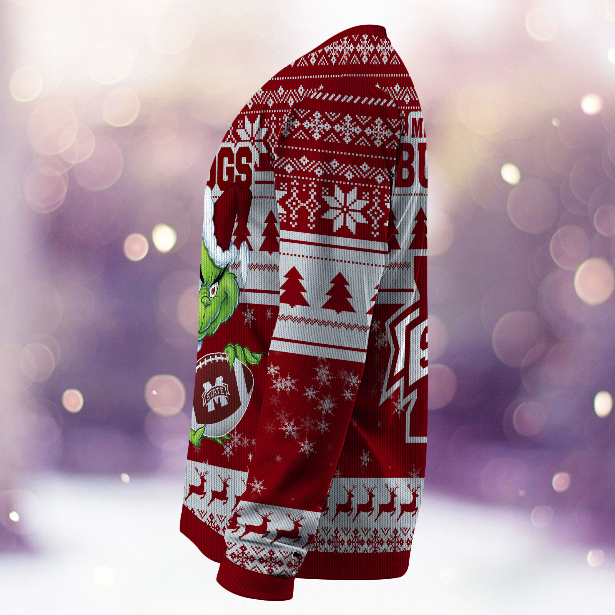 Impress your family and friends with a distinctive blend of style and humor. Our Mississippi State Bulldogs Grinch Ugly Christmas Sweater, go beyond mere apparel; they embody a tradition that sparks joy and creates enduring memories. Embrace the festive spirit with these vibrant polyester masterpieces – the perfect choice to make this holiday season memorable for all those seeking festive clothing treasures.