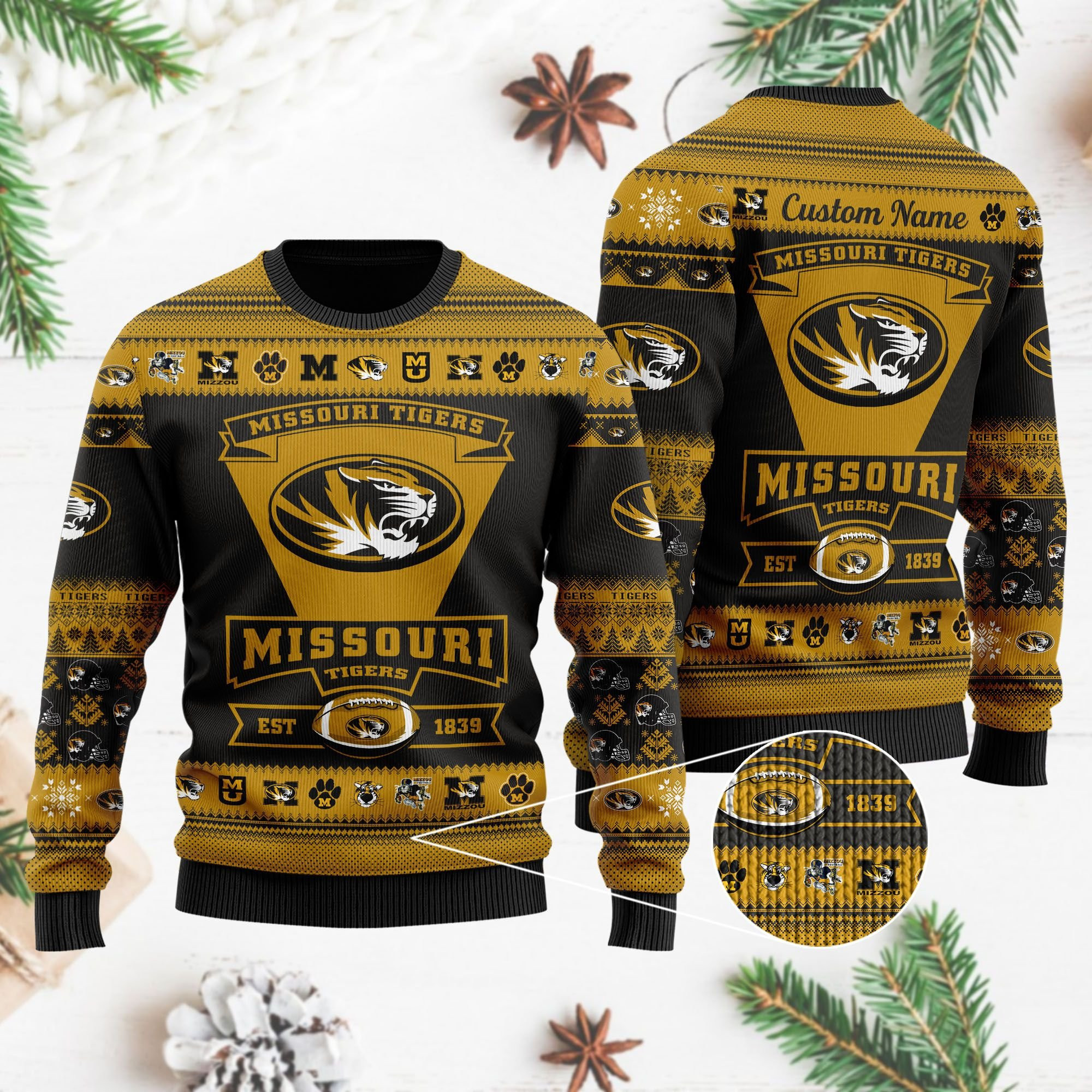 Missouri Tigers Football Team Logo Custom Name Personalized Ugly Christmas Sweater Perfect Holiday Gift