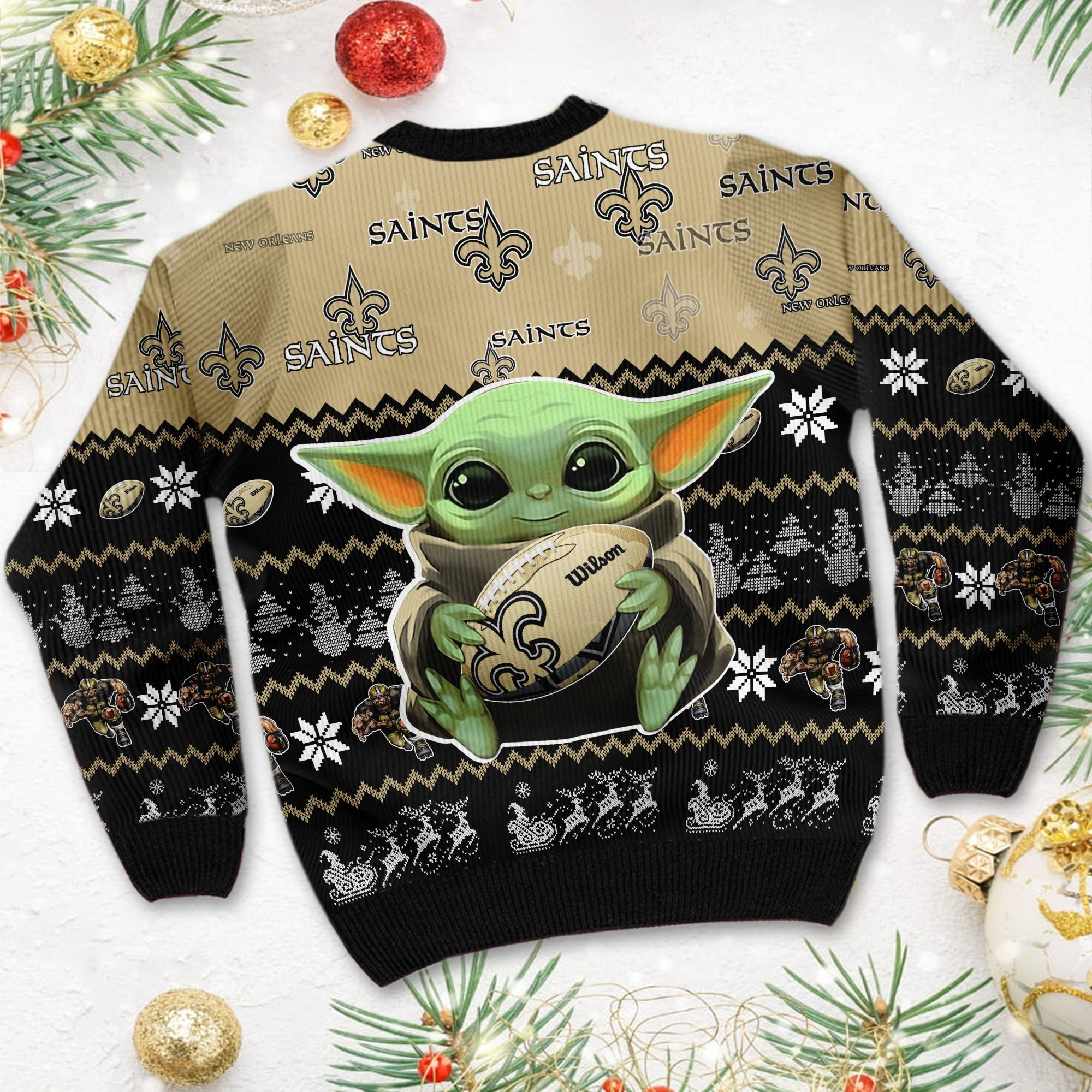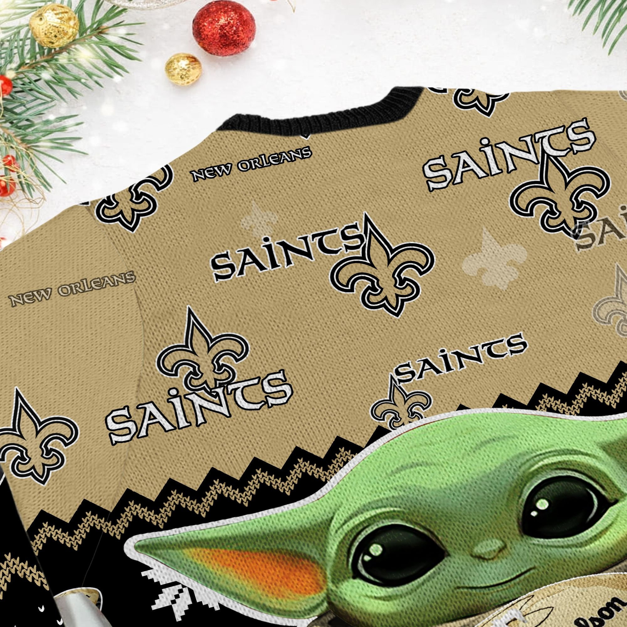 Impress your family and friends with a distinctive blend of style and humor. Our New Orleans Saints Baby Yoda Shirt For American Football Fans Ugly Christmas Sweater, Perfect Holiday Gift go beyond mere apparel; they embody a tradition that sparks joy and creates enduring memories. Embrace the festive spirit with these vibrant polyester masterpieces – the perfect choice to make this holiday season memorable for all those seeking festive clothing treasures.