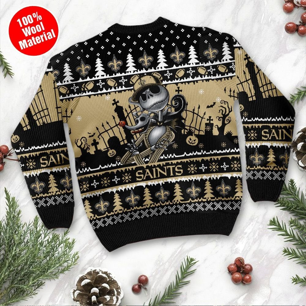Introducing our eagerly anticipated New Orleans Saints Jack Skellington Halloween Holiday Party Ugly Christmas Sweater, Perfect Holiday Gift 2023 – the pinnacle of festive fashion and a must-have addition to your holiday wardrobe! Carefully crafted from premium polyester, these sweaters not only offer a snug fit but also deliver lasting comfort. Explore a captivating array of holiday-themed designs, meeting the widespread demand for classic motifs, playful characters, and clever slogans.