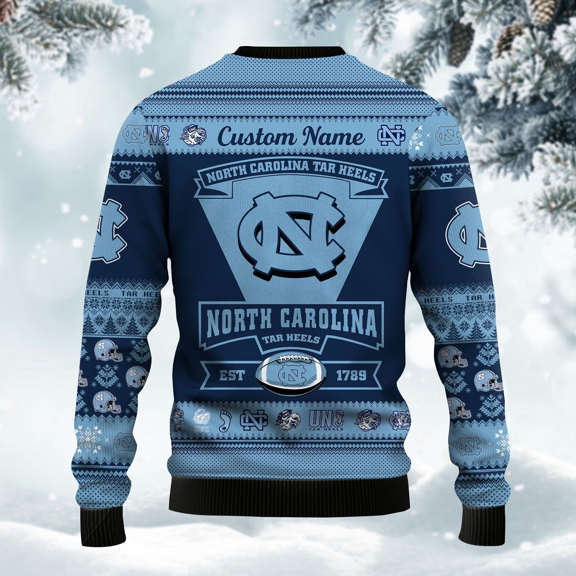 Impress your family and friends with a distinctive blend of style and humor. Our North Carolina Tar Heels Football Team Logo Personalized Ugly Christmas Sweater, Perfect Holiday Gift go beyond mere apparel; they embody a tradition that sparks joy and creates enduring memories. Embrace the festive spirit with these vibrant polyester masterpieces – the perfect choice to make this holiday season memorable for all those seeking festive clothing treasures.