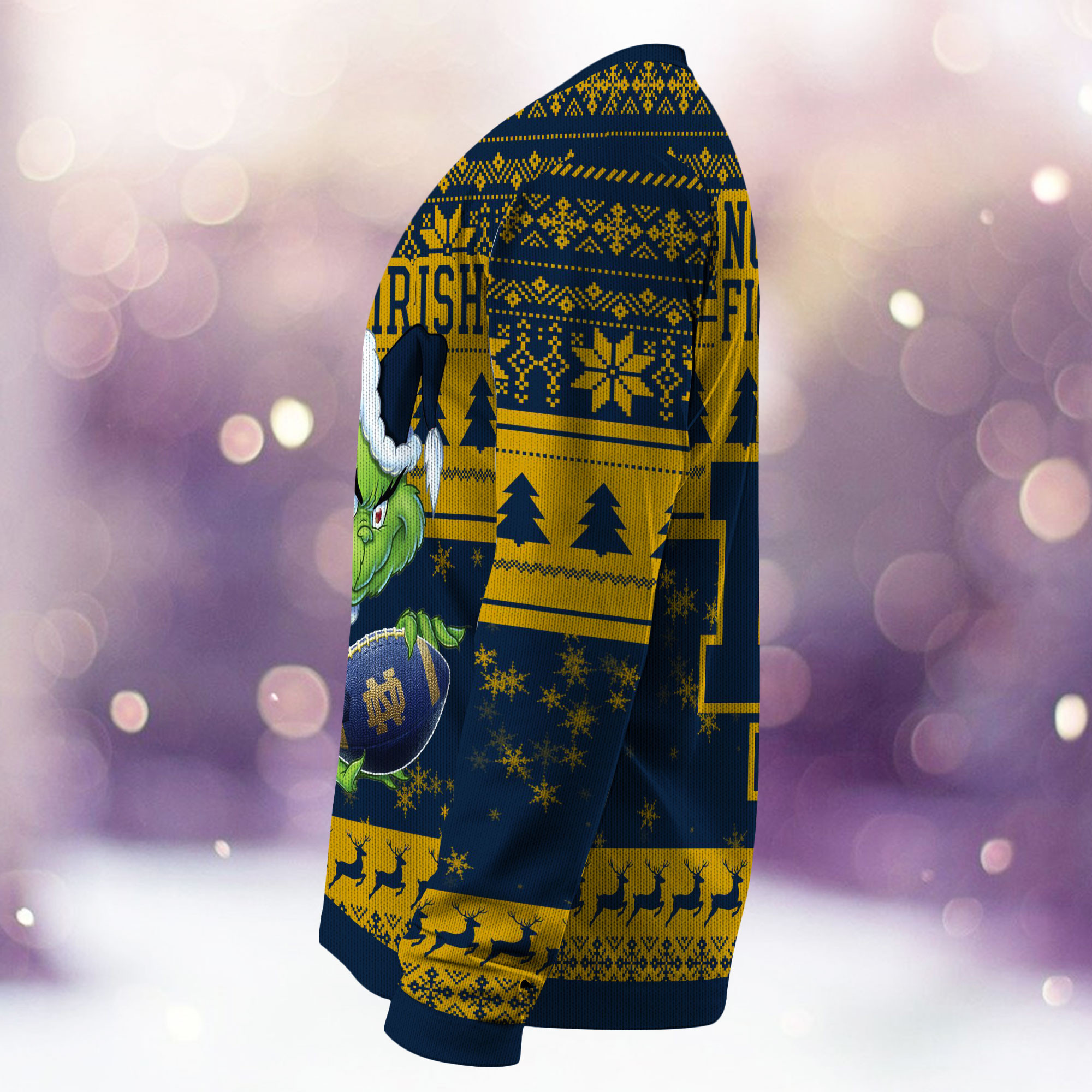 Introducing our eagerly anticipated Notre Dame Fighting Irish Grinch Ugly Christmas Sweater, 2023 – the pinnacle of festive fashion and a must-have addition to your holiday wardrobe! Carefully crafted from premium polyester, these sweaters not only offer a snug fit but also deliver lasting comfort. Explore a captivating array of holiday-themed designs, meeting the widespread demand for classic motifs, playful characters, and clever slogans.