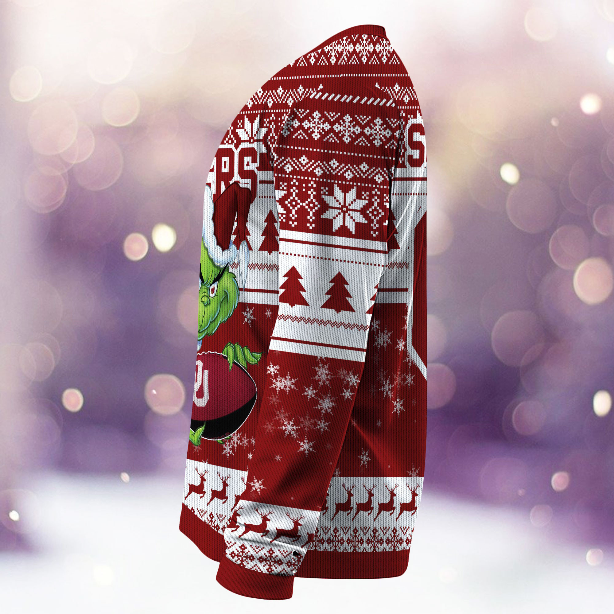 Impress your family and friends with a distinctive blend of style and humor. Our Oklahoma Sooners Grinch Ugly Christmas Sweater, go beyond mere apparel; they embody a tradition that sparks joy and creates enduring memories. Embrace the festive spirit with these vibrant polyester masterpieces – the perfect choice to make this holiday season memorable for all those seeking festive clothing treasures.