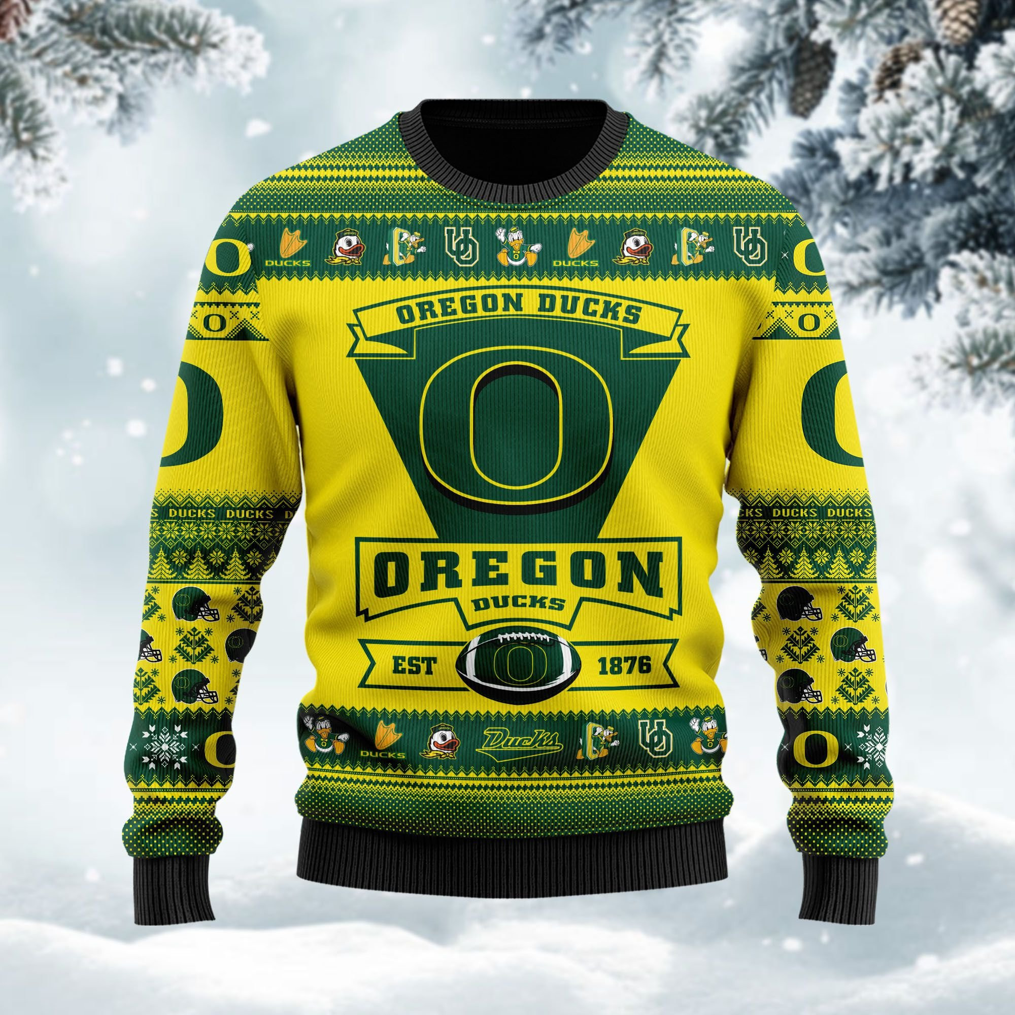 Introducing our eagerly anticipated Oregon Ducks Football Team Logo Custom Name Personalized Ugly Christmas Sweater, Perfect Holiday Gift 2023 – the pinnacle of festive fashion and a must-have addition to your holiday wardrobe! Carefully crafted from premium polyester, these sweaters not only offer a snug fit but also deliver lasting comfort. Explore a captivating array of holiday-themed designs, meeting the widespread demand for classic motifs, playful characters, and clever slogans.