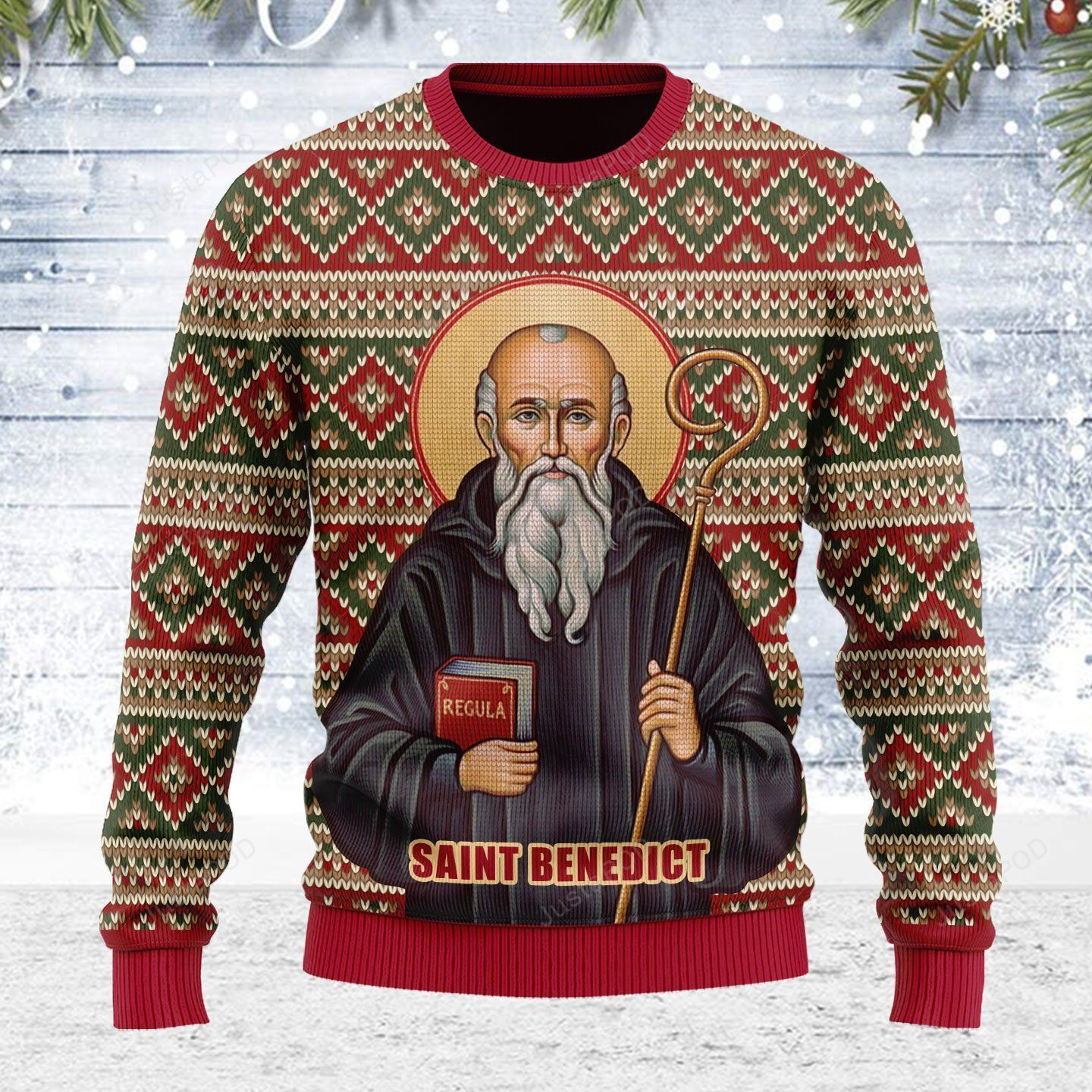 Introducing our eagerly anticipated Saint Benedict Ugly Christmas Sweater, Perfect Holiday Gift 2023 – the pinnacle of festive fashion and a must-have addition to your holiday wardrobe! Carefully crafted from premium polyester, these sweaters not only offer a snug fit but also deliver lasting comfort. Explore a captivating array of holiday-themed designs, meeting the widespread demand for classic motifs, playful characters, and clever slogans.