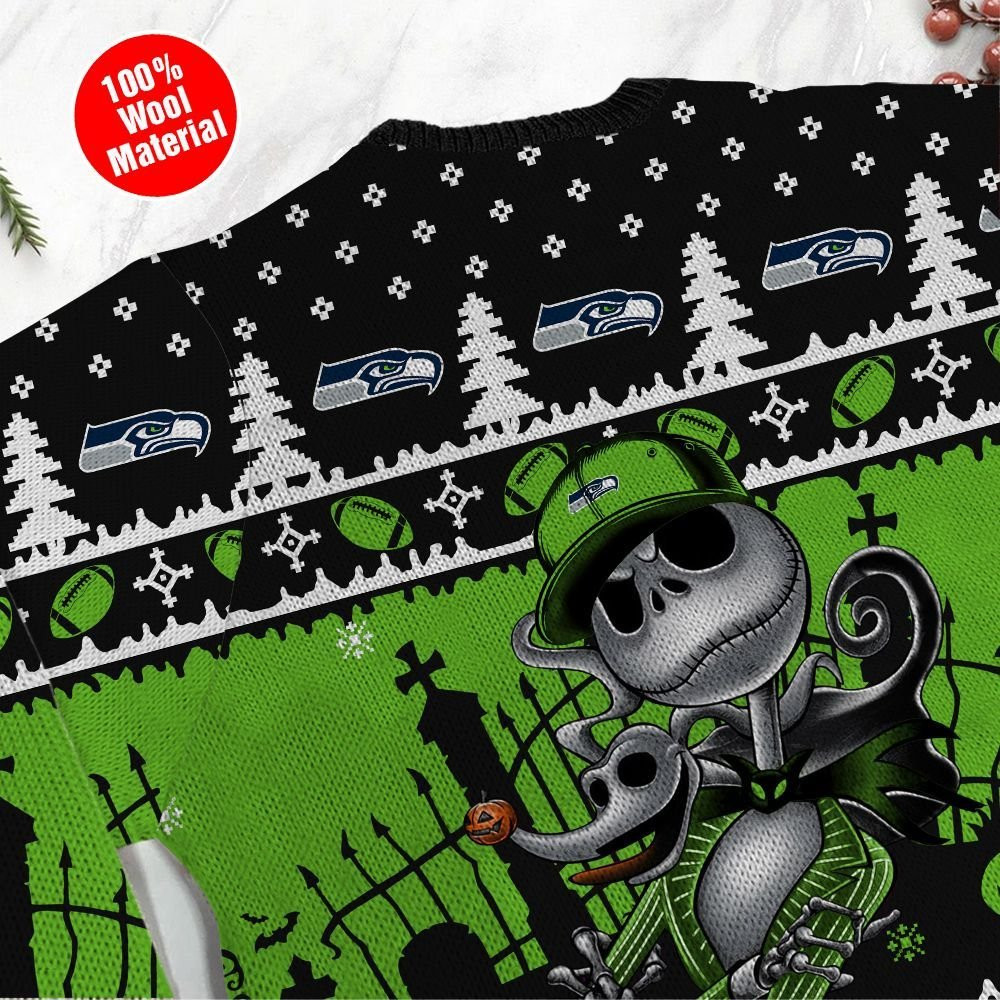 Impress your family and friends with a distinctive blend of style and humor. Our Seattle Seahawks Jack Skellington Halloween Ugly Christmas Sweater, Perfect Holiday Gift go beyond mere apparel; they embody a tradition that sparks joy and creates enduring memories. Embrace the festive spirit with these vibrant polyester masterpieces – the perfect choice to make this holiday season memorable for all those seeking festive clothing treasures.