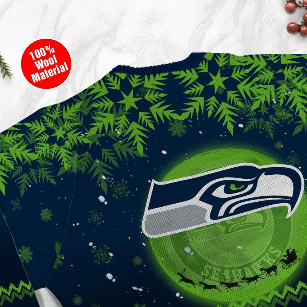 Impress your family and friends with a distinctive blend of style and humor. Our Seattle Seahawks Santa Claus In The Moon Ugly Christmas Sweater, Perfect Holiday Gift go beyond mere apparel; they embody a tradition that sparks joy and creates enduring memories. Embrace the festive spirit with these vibrant polyester masterpieces – the perfect choice to make this holiday season memorable for all those seeking festive clothing treasures.