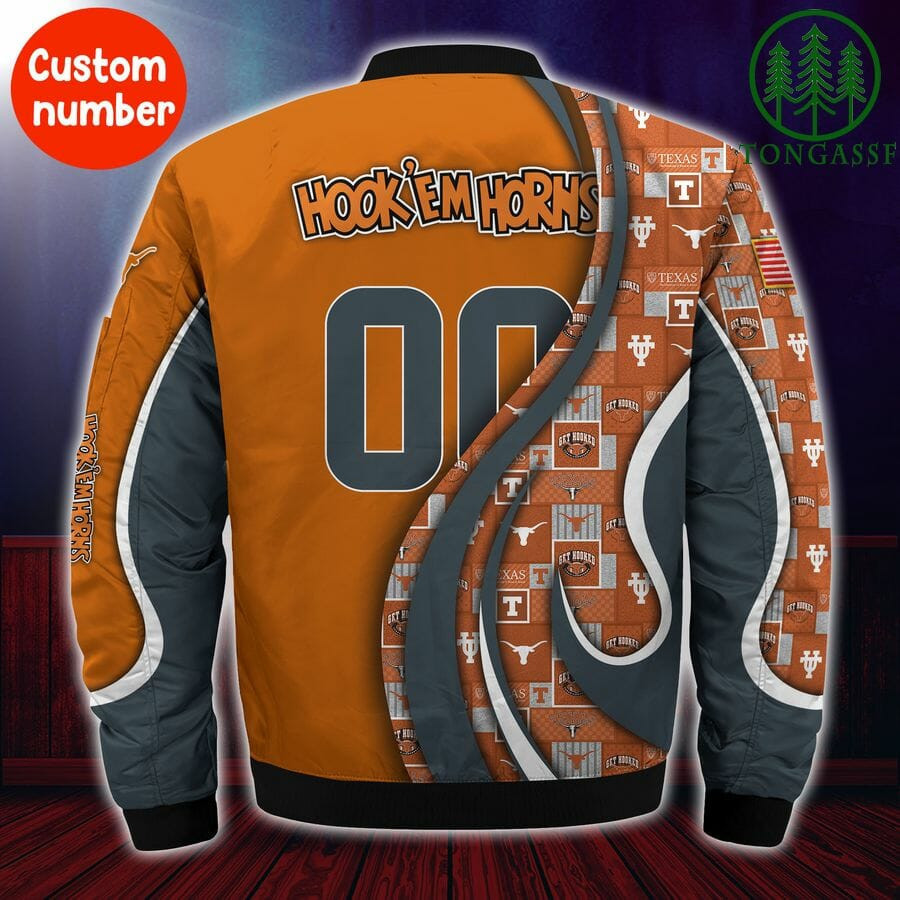Texas Longhorns Personalized Name Number Orange Bomber Jacket | NCAA College Team Jacket for Men & Women | Sports Fan Gift