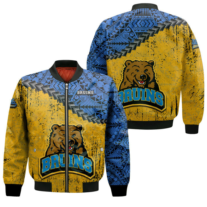 UCLA Bruins Blue Gold Polynesian Bomber Jacket | NCAA College Team Jacket for Men & Women | Sports Fan Gift