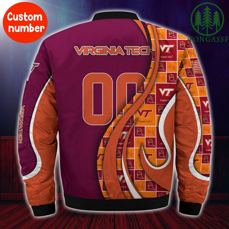 Virginia Tech Hokies Personalized Name Number Maroon Orange Bomber Jacket | NCAA College Team Jacket for Men & Women | Sports Fan Gift