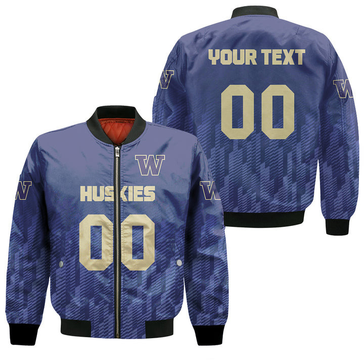 Washington Huskies Personalized Text Number Purple Bomber Jacket | NCAA College Team Jacket for Men & Women | Sports Fan Gift